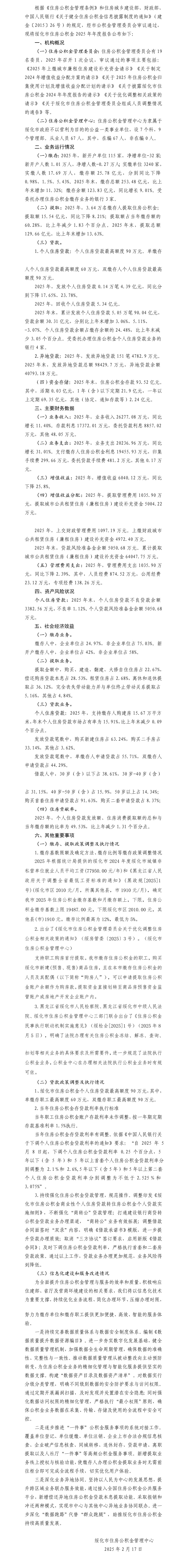 绥化市住房公积金2025年年度报告