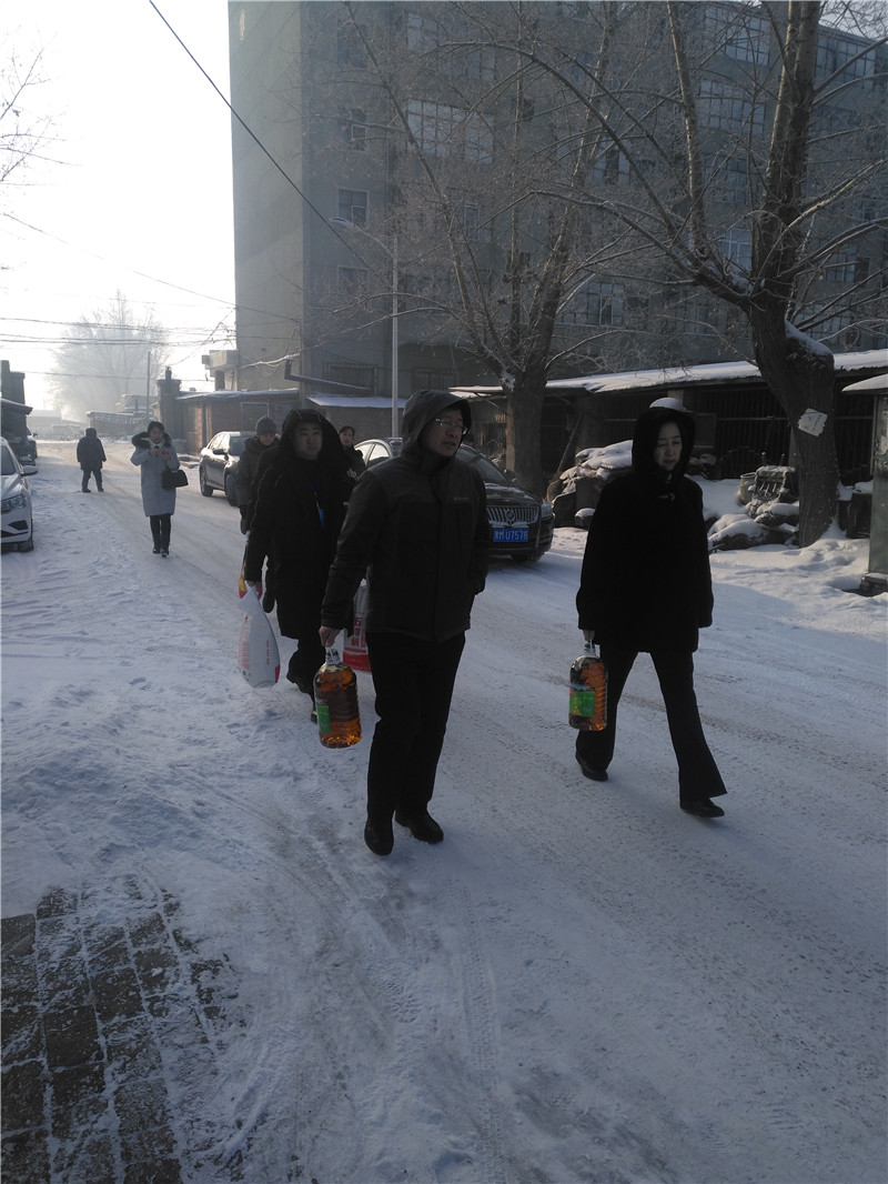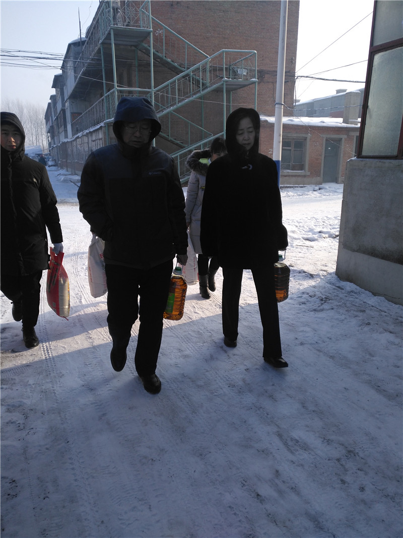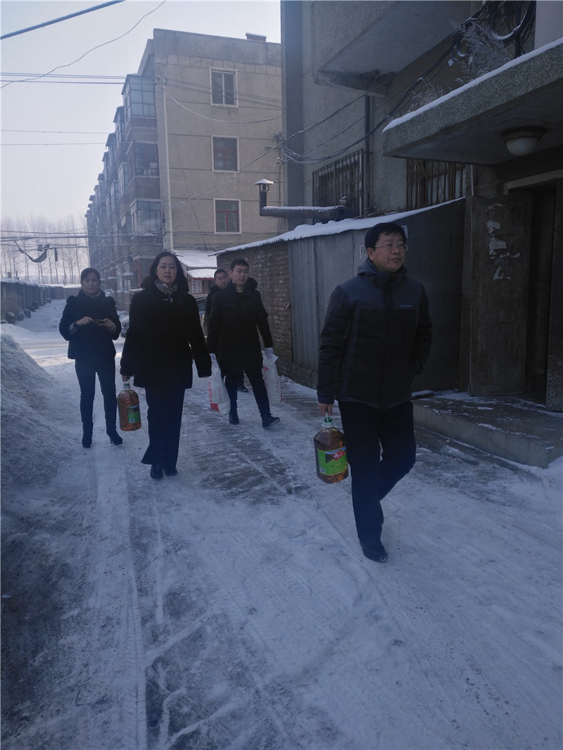 2018年1月16日,市住房公积金中心慰问组一行来到青冈县劳动镇互助村,在驻村工作组的陪同下,对该村的宋秀凤、高文、魏洪斌三户包扶贫困户进行走访慰问;2018年1月18日,慰问组又深入绥化北林区铁北社区,在社区工作人员的陪同下,对田兆学、吴佳琪、李秀英、袁玉英、赵庆福五户帮扶困难家庭走访慰问。向包扶和帮扶的八户困难贫困家庭送上米、面、食用油等慰问品,同时特别对三户困难家庭的上学子女额外给予了500元的助学慰问资金,表达了我中心党员干部对扶助的贫困户和困难家庭的关爱之情。